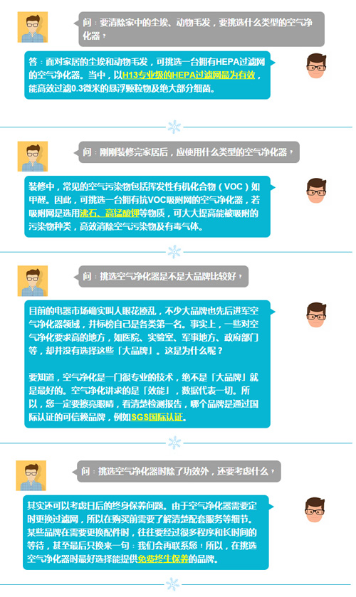 要挑選一臺適合自己家居的商用凈化器,最好的方法是詢問專業人士的意見,可是如果身旁沒有專業人士怎么辦﹖那就更要多多關注我們申瑞公司的專業技術資訊了。 在選擇空氣凈化器前,首要清楚自己的需要。市面上有針對不同需要的空氣凈化器,如高密度過濾網式(HEPA)、紫外線殺菌式、光催化式、負離子式等,很多人都不清楚應該挑選類型的空氣凈化器。我們把一些常見問題列舉如下﹕