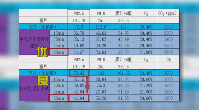 新風系統測試結果 通過實驗證明,同樣的凈化設備,室內空氣凈化機凈化力度要比新風系統強,在同樣的環境里,空氣凈化器能將室內的PM2.5濃度,從72μg/m3降到了14μg/m3,空氣質量為優,凈化效果非常明顯,然而新風系統將屋內PM2.5濃度數值從72μg/m3只下降到了41μg/m3,空氣質量僅為良。這顯示,新風系統在單位時間的空氣凈化能力,遠遠落后于空氣凈化器。