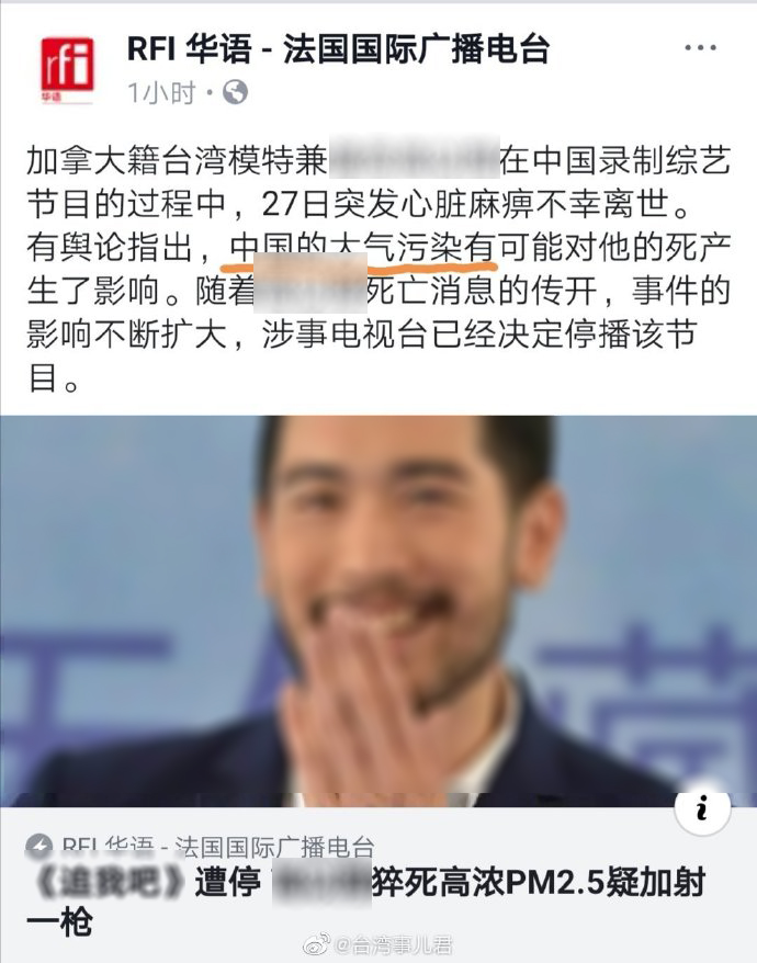 最近臺灣藝人猝死的信息上個各大熱搜,我們懷著悲傷的心情一邊痛心,一邊擔(dān)心,但申瑞煙霧凈化機設(shè)備小編近日在網(wǎng)上突然看到某外國媒體發(fā)布的一遍新聞,指中國的大氣污染有可能對世者產(chǎn)生了影響????什么鬼??我們國家現(xiàn)在空氣環(huán)境沒和么差吧,真為法國人的智商著急。