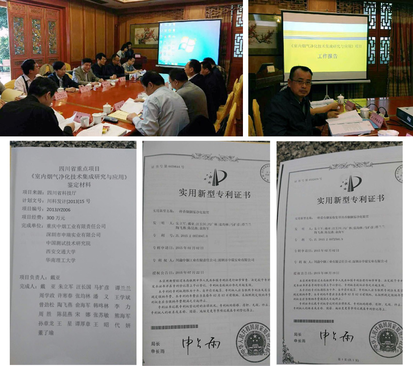 歷時三年,深圳市申瑞實業有限公司與川渝中煙公司聯合研制的香煙煙霧凈化新材料及新型凈化設備獲國家專利,并經重慶市科委組織的專家委員會評審通過,成功申報國家科技成果獎! 工匠精神, 與君共勉! 祝賀!